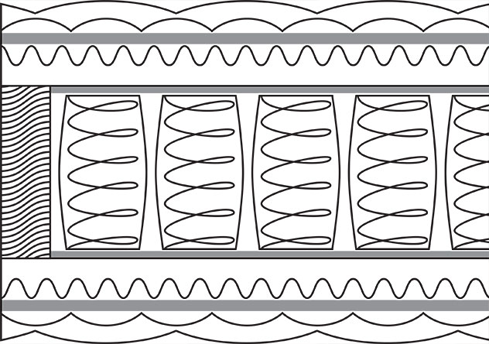 Sommige fabrikanten verwerken in hun matrassen zeer volumineuze afdeklagen van katoen, linnen, paardenhaar of soms kamelenhaar. Wij hebben er bewust de voorkeur aan gegeven om dit niet te doen en te werken met een eerste afdeklaag in jute en vervolgens hierop een laag, in zones gesneden (geprofileerd) koudschuim aan te brengen.
